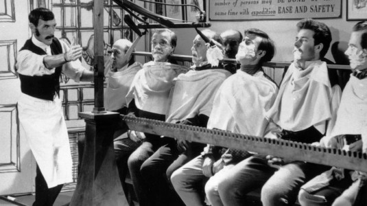 L’attore Eric Sykes usa la cosiddetta "macchina per la rasatura di massa" – che consentirebbe di fare la barba contemporaneamente a diversi uomini – per la presentazione del pilot di Brainwaves, una serie tv che voleva riproporre bizzarre invenzioni create nel diciannovesimo secolo, ma [...] (). (leggi)